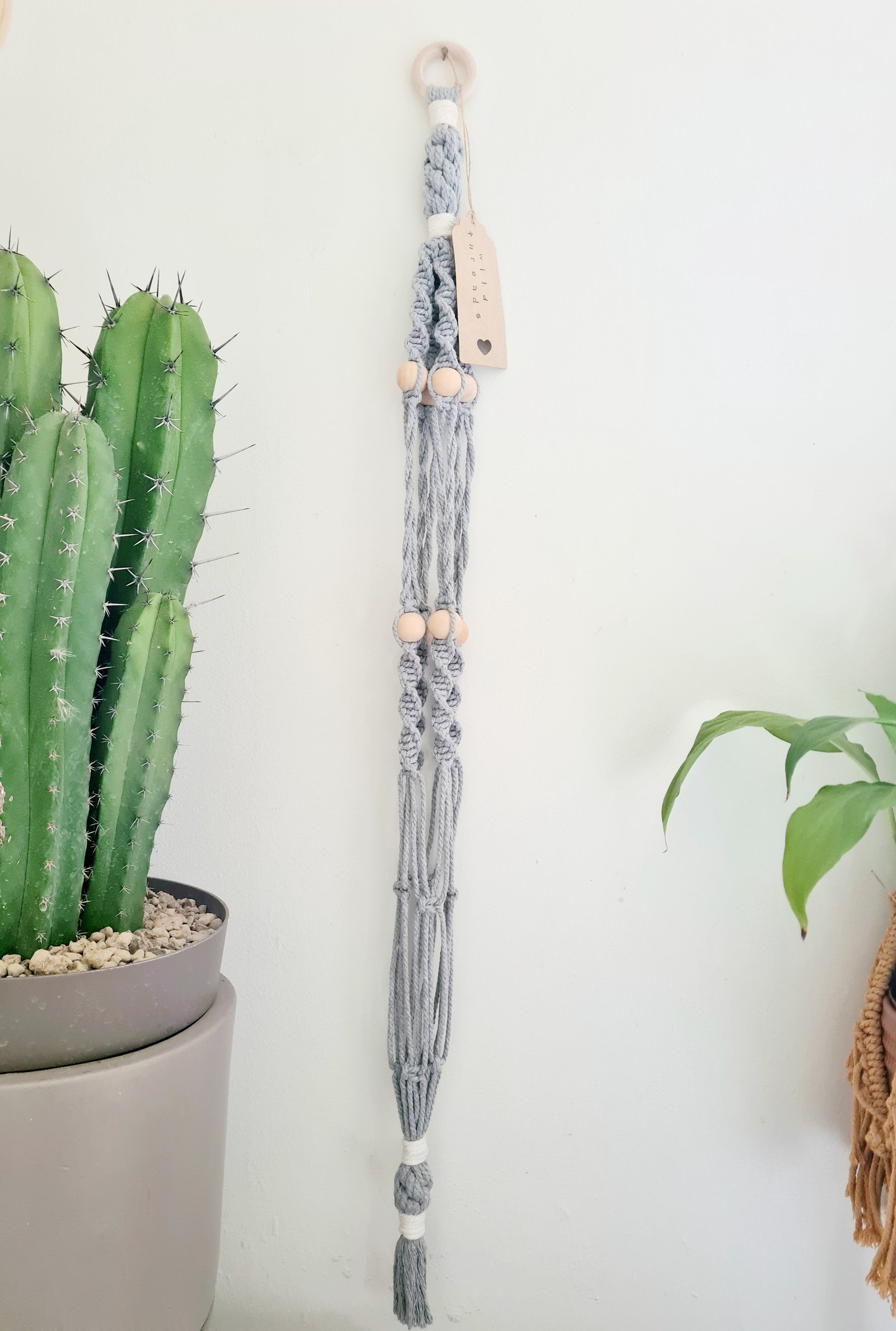 Bring natural elegance to your indoor garden with this handcrafted macramé plant hanger, thoughtfully designed to showcase your favorite potted plants in style. Each piece features eco-friendly cotton cord in soft, neutral tones, beautifully accented with smooth wooden beads that add an organic, earthy touch.