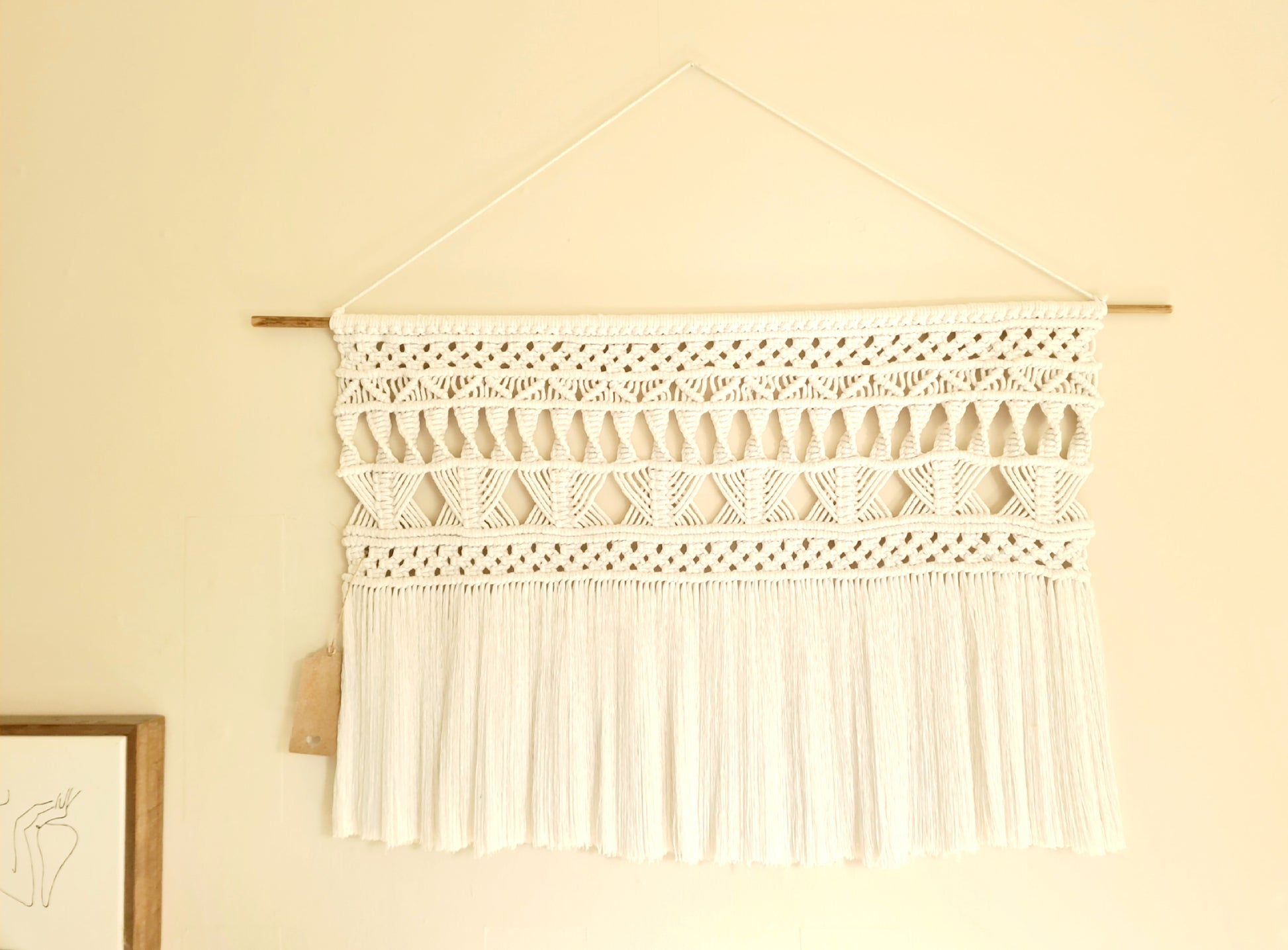 Layered with rich texture and natural tones, the Oasis wall weave is a grounding piece for boho-inspired interiors. Carefully woven and knotted by hand, it creates a sense of stillness and balance—perfect for elevating a quiet corner or anchoring a feature wall. This hanging brings a subtle statement to spaces that crave warmth and depth.
